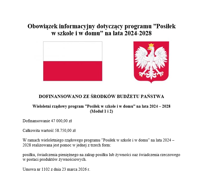 Obowiązek informacyjny dotyczący programu ”Posiłek w szkole i w domu” na lata 2024-2028