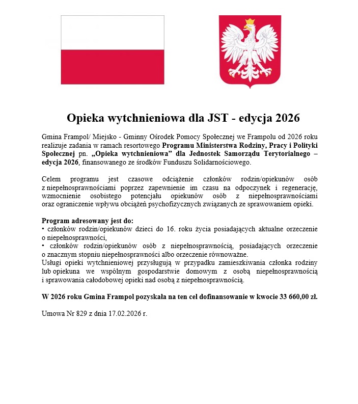 Obowiązek informacyjny dotyczący programu opieka wytchnieniowa dla JST – edycja 2026
